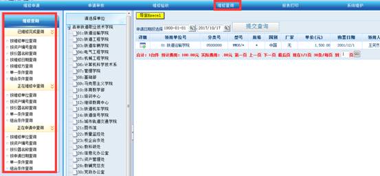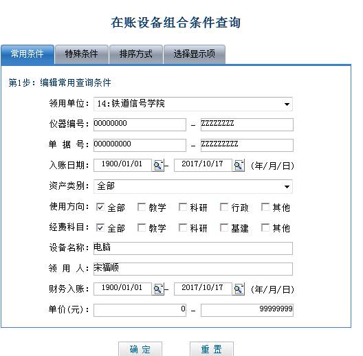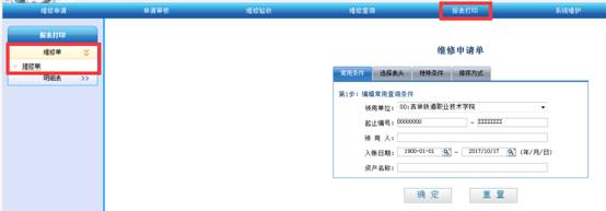 说明:这里讲的设备查询与图表打印都是常用的,如有问题请与资产处黄伟联系,谢谢!