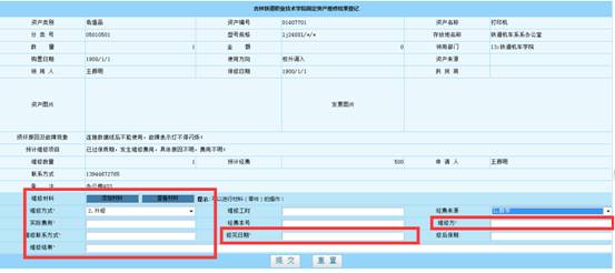 (5)提交(要求打印出单据,一式一份,双方签字后交到资产管理处)
